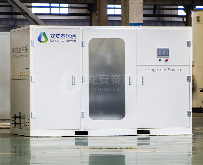 是一種新型的用于在線生產次氯酸鈉溶液的設備。適用于各種需要采用次氯酸鈉進行消毒的場合。其工作原理是:氯化鈉溶液在一定的槽電壓作用下,在電解槽